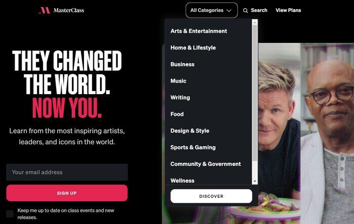 MasterClass offers several ways for you to explore the platform. You can: